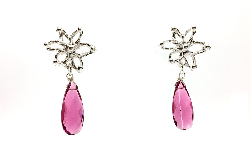 Aros de plata tallada a mano y Turmalina fucsia.