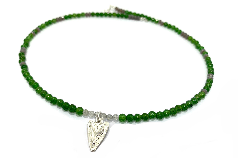 Collar de plata tallada a mano, labradoras y ágatas verdes.