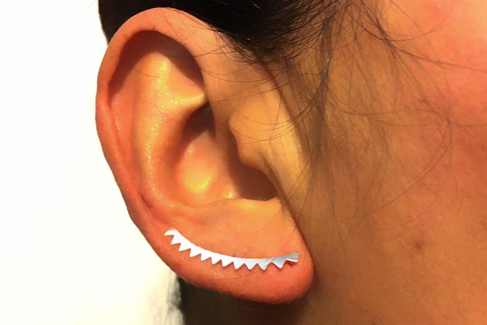 Aros de plata con forma de rayito de sol.
